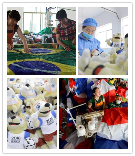 比賽用球中國造,小國旗中國造,吉祥物中國造,保溫杯中國造……場館空調(diào)、電梯、LED顯示屏,也都是中國造。